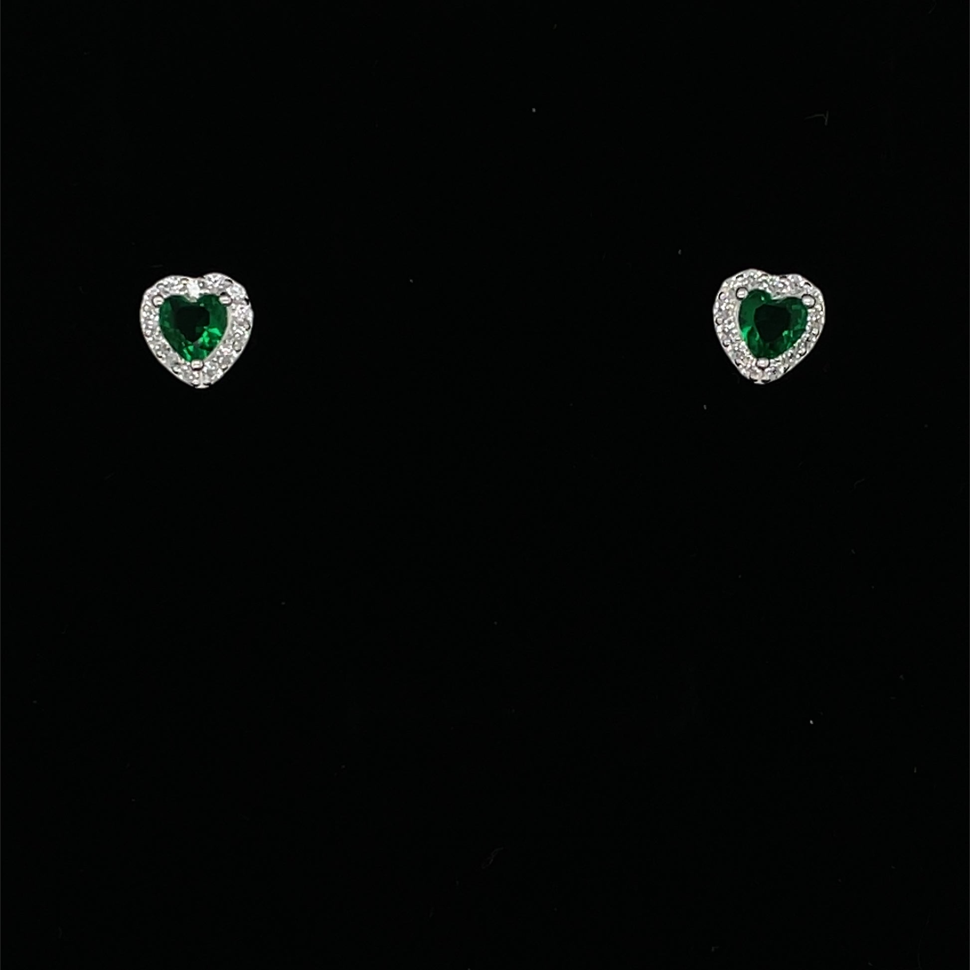 Silver Green CZ Heart Halo Stud Earrings 326/EM