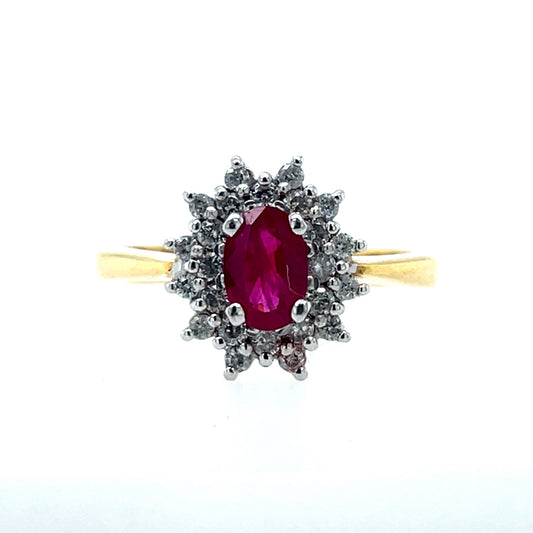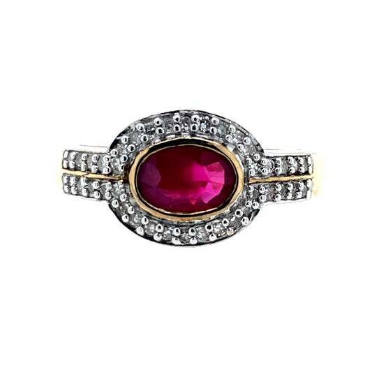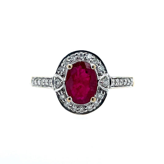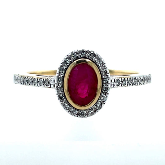 9ct Gold Ruby & Diamond Oval Halo Ring GRR039