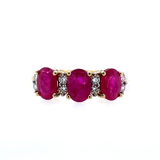 14ct Gold Ruby & Diamond Trilogy Ring GRR098