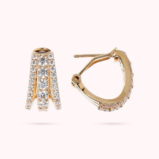 Bronzeallure Golden Triple Row Pavé Stud Earrings in Cubic Zirconia WSBZ01981Y.Y