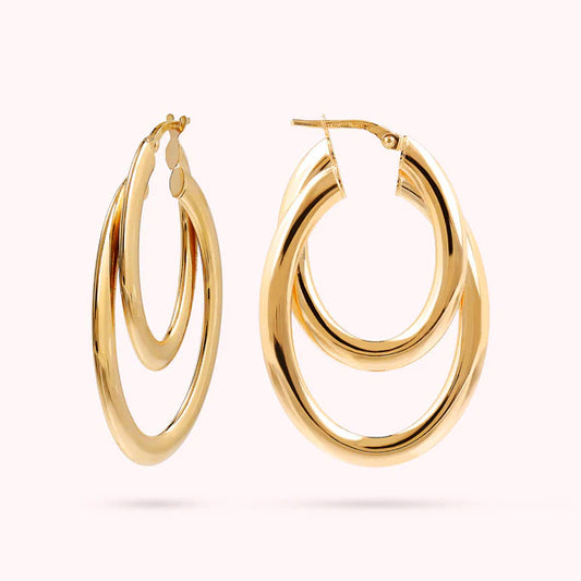 Bronzeallure Golden Thin Double Hoop Earrings WSBZ02045Y.Y