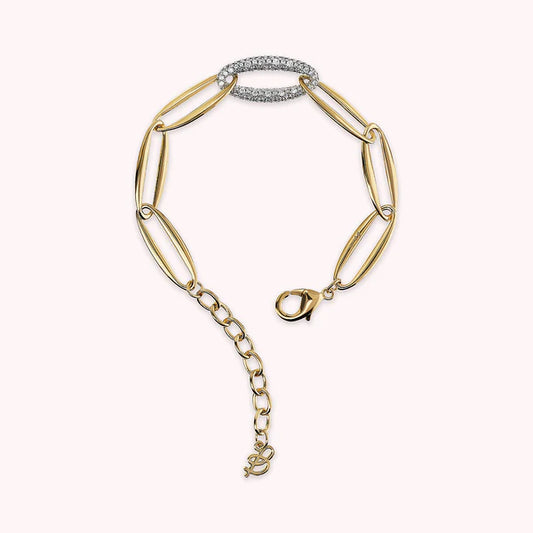 Bronzeallure Golden Marquise Link Bracelet and Cubic Zirconia Pavé Element WSBZ02373Y.WR