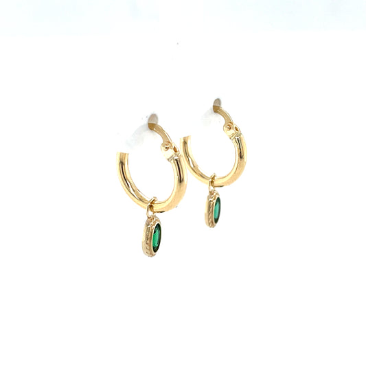 9ct Gold 10mm Hoop Earrings Emerald Cz Dropper GEE71