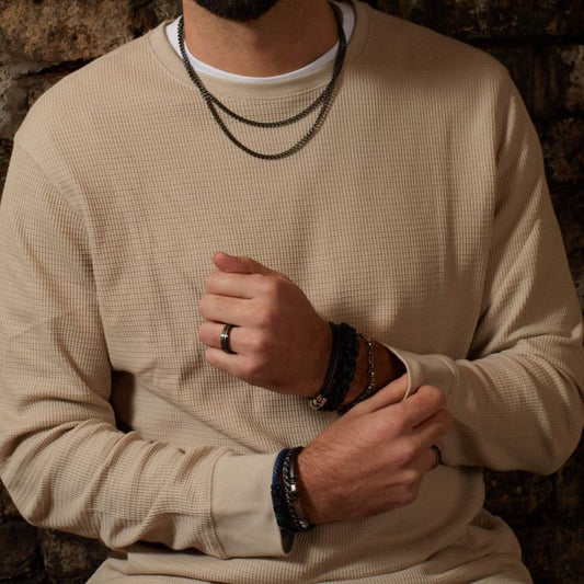 Fred Bennett Multi Row Black Leather Bracelet with Lava Beads B5318