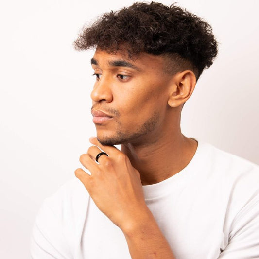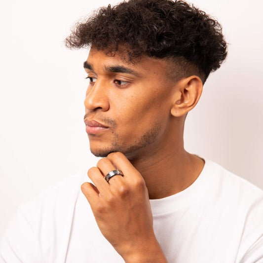 Fred Bennett Tungsten Ring with Black Enamel Stripe R3860