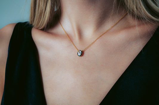 Georgini Reflection Oval Pendant Gold & Black Enamel