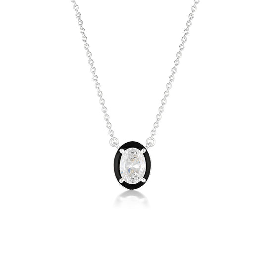 Georgini Reflection Oval Pendant Silver & Black Enamel
