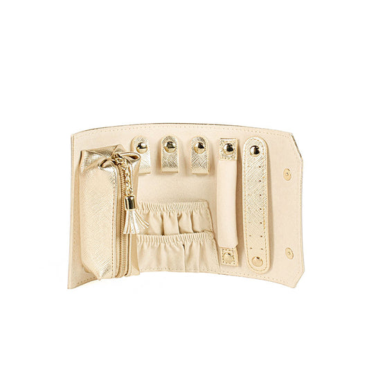 Glossy gold-coloured embossed leatherette jewellery travel roll 717997