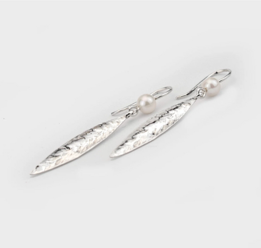 Martina Hamilton Leaf Sterling Silver and Pearl Drop Earrings Medium LFC2B