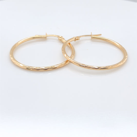 9ct Gold 25mm Skinny Hoop Earrings D/C Edge