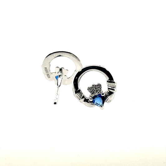 Silver Claddagh Sapphire CZ Stud Earrings September Birthstone SE304/S