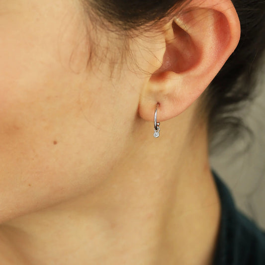 SILVER DELICATE TOUCH HOOPS CZ CHARM ST1859