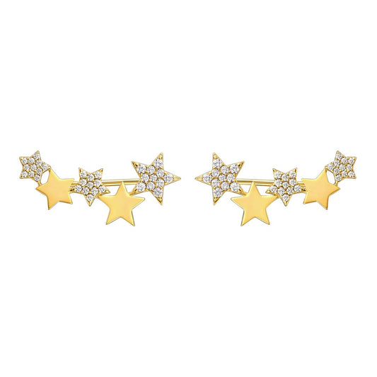 SILVER GOLD PLATED CZ SHINY STARS EARRINGS ST2289