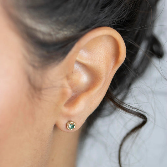 Silver Modern Gold Plated Delicate Touch Stud Earrings Green