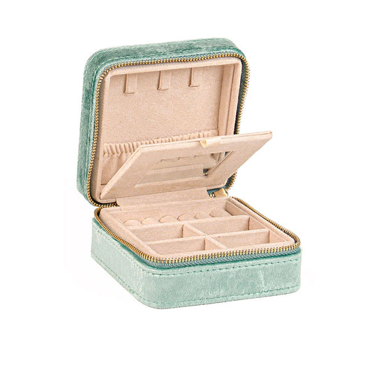 Square sage green jewellery box in man-made velvet 718010