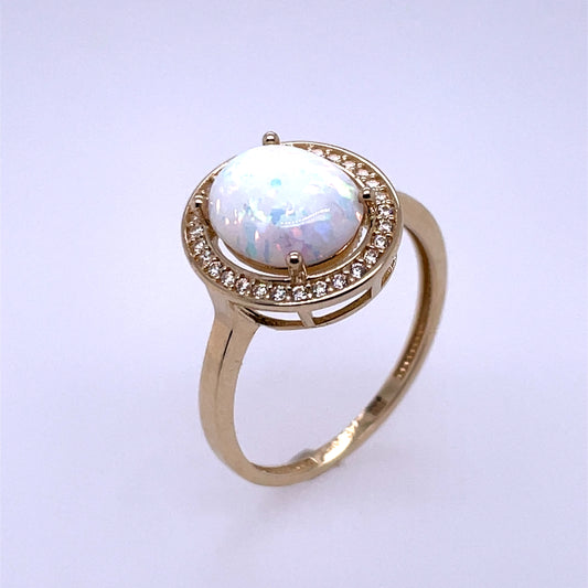 9ct Gold Created Opal & CZ Halo Ring GRL45