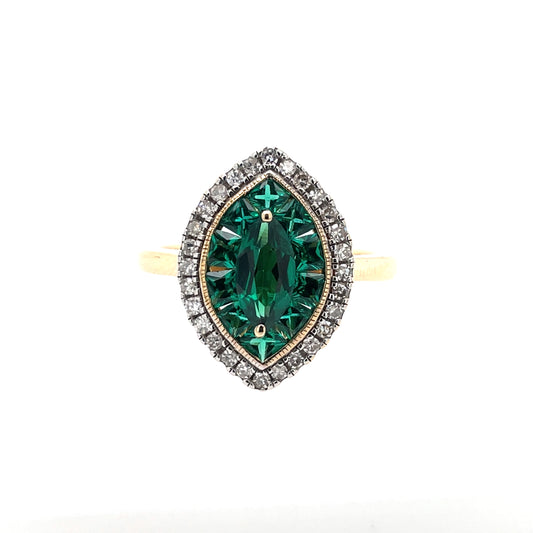 9ct Gold Created Emerald & Diamond Marquise Ring GRE139