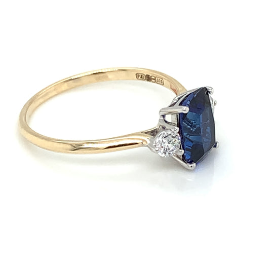 9ct Gold Created Cushion Sapphire & CZ Ring GRS267