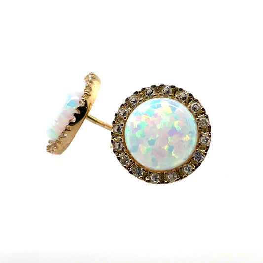 9ct Gold Created Opal & CZ Round Halo Earrings GEL11