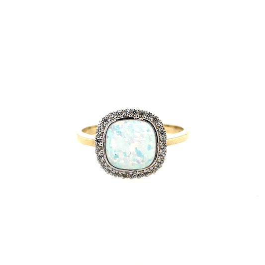 9ct Gold Created Opal & CZ Cushion Cluster Ring GRL79