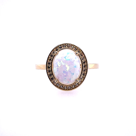 9ct Gold Created Opal & CZ Halo Ring GRL45