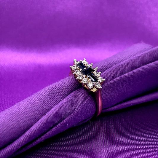 9ct Gold Created Sapphire & CZ Vintage Cluster Ring GRS271