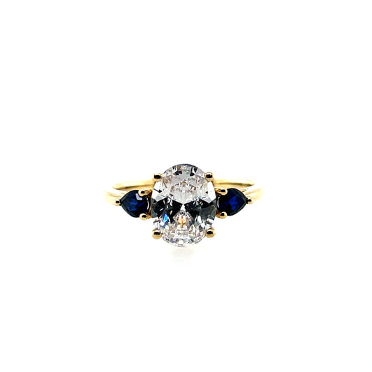 9ct Gold Created Sapphire & CZ Ring GRS279