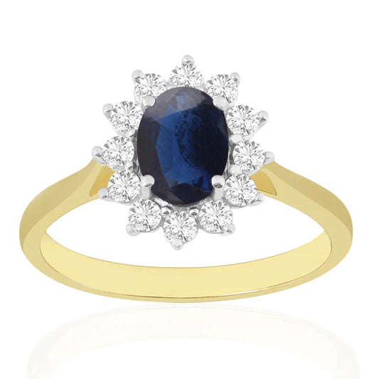 18ct Gold 1.00ct Sapphire & Diamond Cluster Ring GRS126