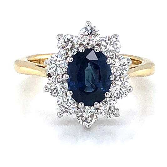 18ct Gold 1.55ct Sapphire & 1.00ct Diamond Cluster Ring GRS258