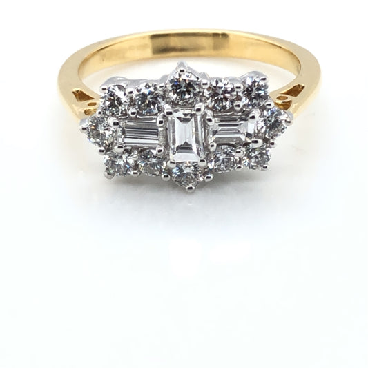18ct Gold Diamond 1.00ct Baguette Cluster Ring Y09