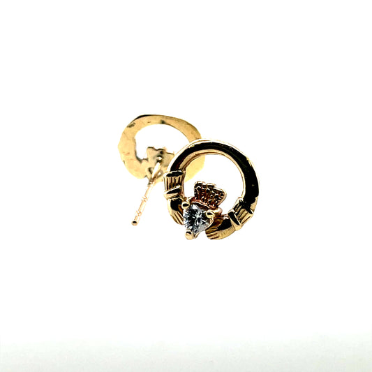 9ct Gold CZ Claddagh Stud Earrings GEZ751