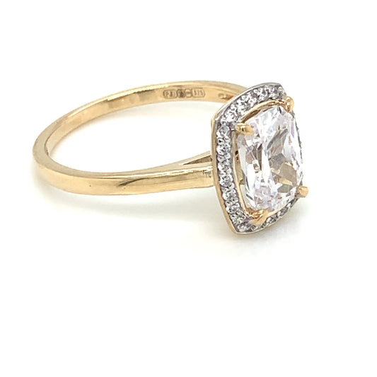 9ct Gold CZ Cushion Halo Ring GRZ303