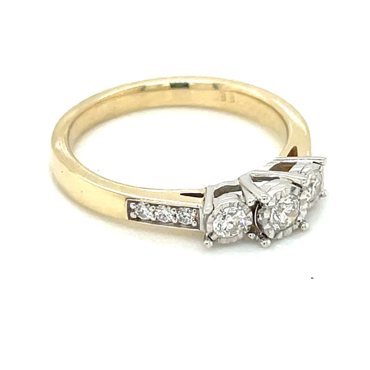 9ct Gold Diamond 0.33ct Trilogy Illusion Ring T75