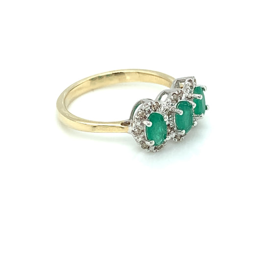 9ct Gold Emerald & Diamond 3 Halo Ring GRE119