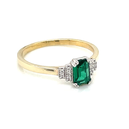 9ct Gold Emerald & Diamond Rectangular Ring