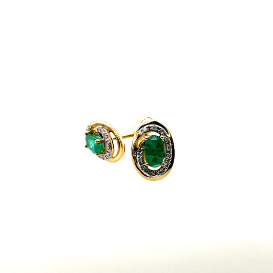 9ct Gold Emerald & Diamond Stud Earrings GEE66