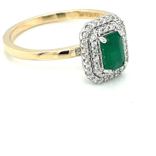 9ct Gold Emerald & Diamond 0.20ct Rectangular Double Halo Ring GRE126
