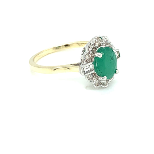 9ct Gold Emerald & Diamond Deco Cluster Ring GRE064