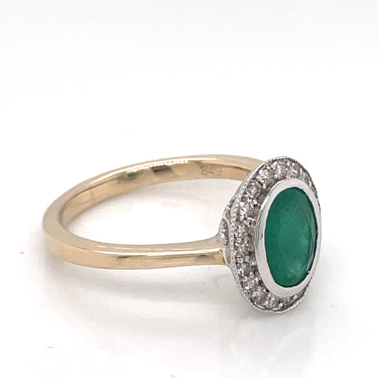 9ct Gold Emerald & Diamond Halo Ring GRE136