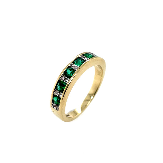 9ct Gold Emerald & Diamond Band GRE142
