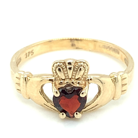 9ct Gold Garnet Claddagh Ring GR378