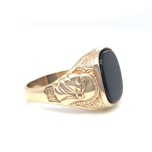9ct Gold Gents Cushion Onyx Centurion Shoulders Ring GR114