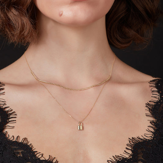 9ct Gold Layered Curb Chain & Padlock Necklet GP599