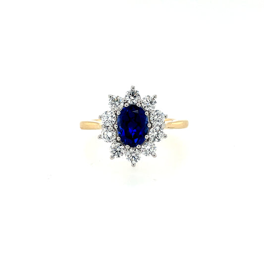 9ct Gold Lab Grown Sapphire & Diamond 1.00ct Cluster Ring GRS281