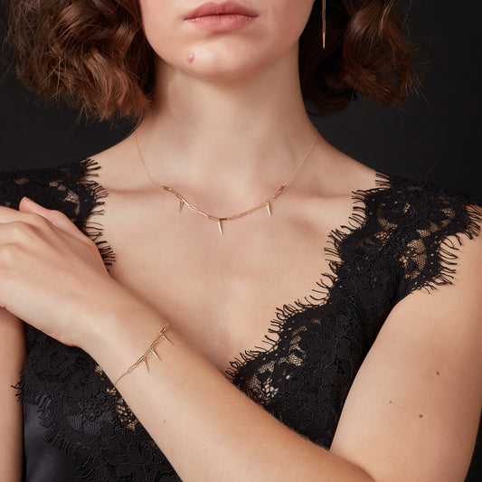 9ct Gold Linked Chain Necklet with Spike Drops GP603