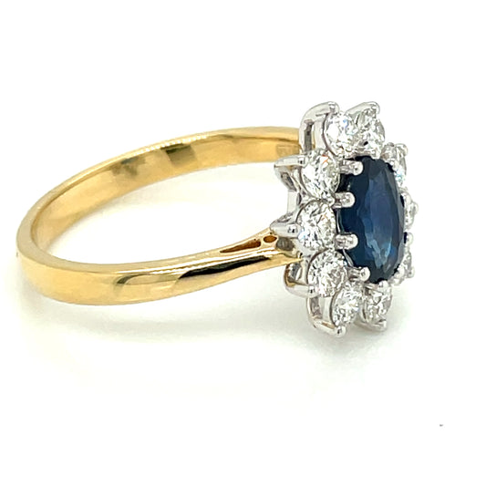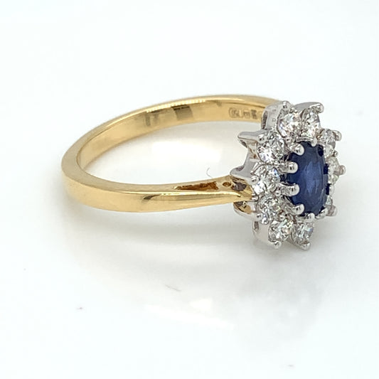 18ct Gold Sapphire & Diamond 0.75ct Cluster Ring GRS242