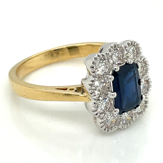 18ct Gold Sapphire & Diamond 0.75ct Rectangular Cluster Ring GRS243