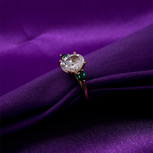 9ct Gold Oval Cz & Created Emerald Ring GRE143