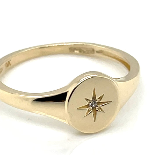 9ct Gold Oval CZ set Signet Ring GRZ314