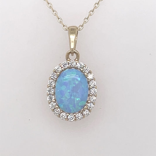 9ct Gold Opal & CZ Oval Halo Pendant GPL57